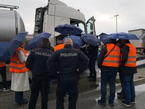 On the second day, participants took part in a practical roadside inspection exercise at the Božaj border crossing. Inspection teams demonstrated how vehicles carrying dangerous goods are checked in practice, from documents and vehicle equipment to safety requirements for drivers. This hands-on exercise helped inspectors compare approaches, learn from each other, and identify areas for improvement.