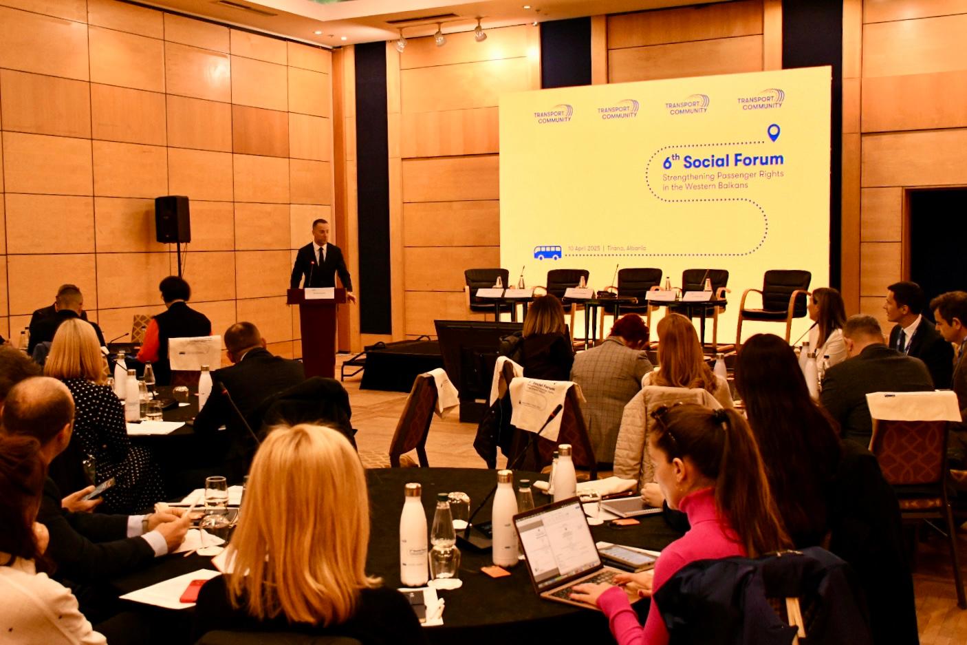 TIRANA – The 6th Social Forum of the Transport Community took place on 10 April and brought together more than 50 regional and EU stakeholders to advance the transposition and implementation of EU acquis on passenger rights. The central theme of the 6th Social Forum was “Strengthening Passenger Rights in the Western Balkans.” Discussions were built on the findings of the 2024 Study on Strengthening the Regulatory Framework for Passenger Rights in the Western Balkans, which identified critical gaps in legislation, enforcement, and awareness. These included limited transposition of EU legislation, under-resourced enforcement bodies, and inconsistent complaint-handling procedures across the region. The study also served as a key evidence base to shape future policy and programming under the Transport Community framework.